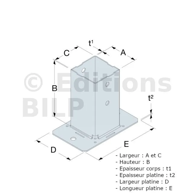Pied de poteau pour muret et bord de dalle - Finition GALVANISEE - Réf. PPJBM90