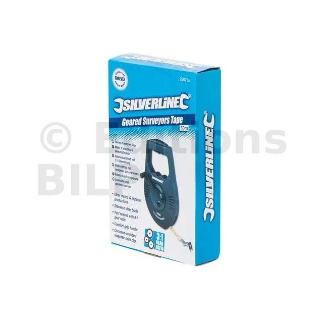 Mètre d’arpenteur à démultiplication, ruban en acier inoxydable 50m x 12mm - Réf. 250213