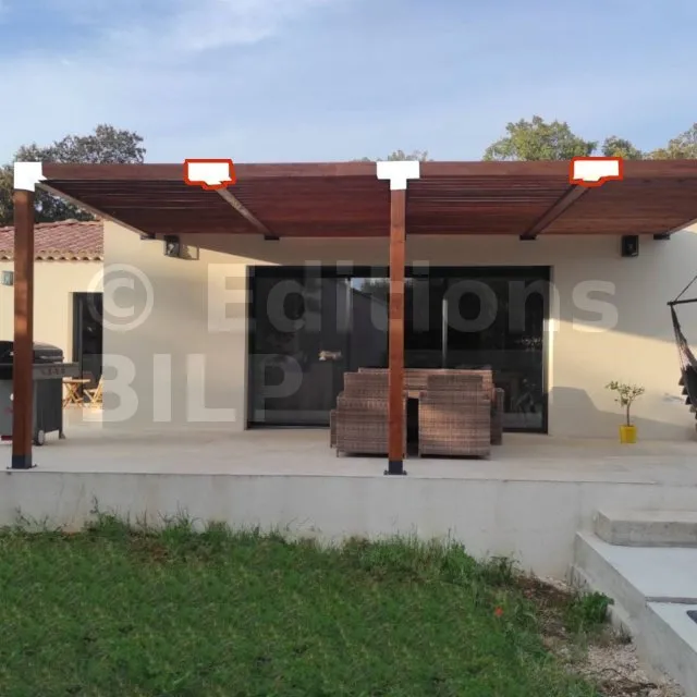 Il permet également la connexion d’une longue poutre de 120x120mm à un poteau intermédiaire de 120x120mm.