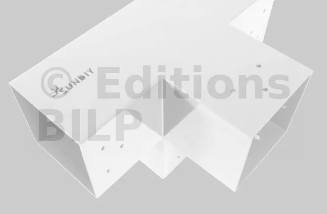 Il permet de raccorder une poutre de 90x90mm perpendiculairement à un chevron de 90x90mm, le tout étant supporté par un poteau vertical de 90x90mm.