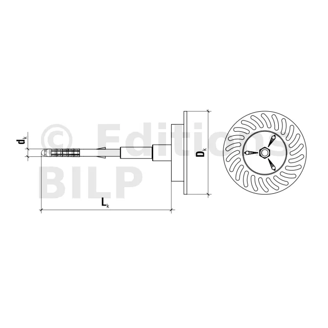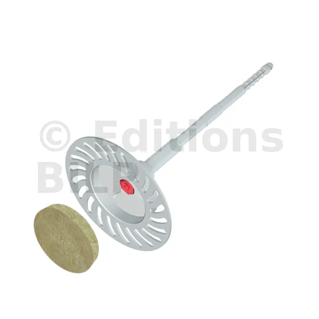 Cheville d’isolation à visser avec clou métal et rondelle d’appui télescopique pour la laine minérale - Diamètre 8mm - Réf. ECODRIVE-W-08310(50)
