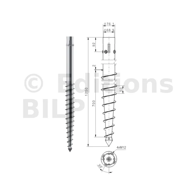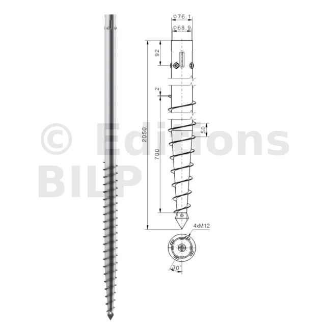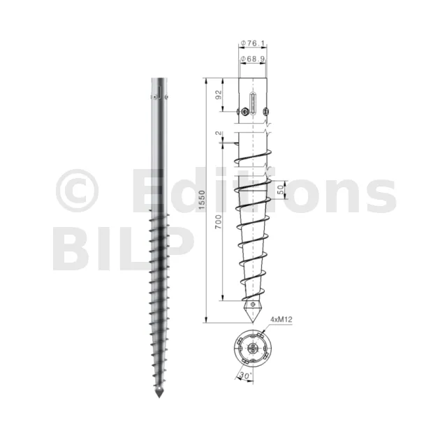 - à l’une des extrémités une pointe “harpon” surmontée d’une partie en spirale pour pouvoir creuser le sol,