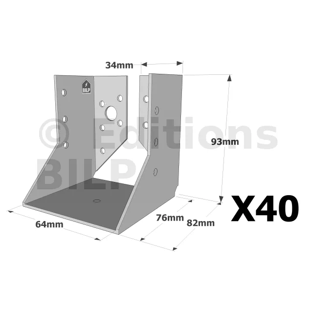 On admet une tolérance de 2 mm maximum entre l‘épaisseur du bois et la largeur du sabot. Exemple : un sabot plié à 76 mm peut porter une épaisseur de bois de 74 mm.