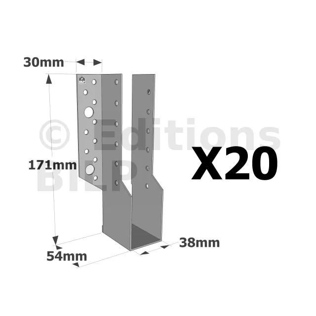 Sabots à ailes extérieures, gamme SBE ECONOMIQUE (épaisseur 1,5mm, profondeur 55mm) - Réf. SBE38/171_20