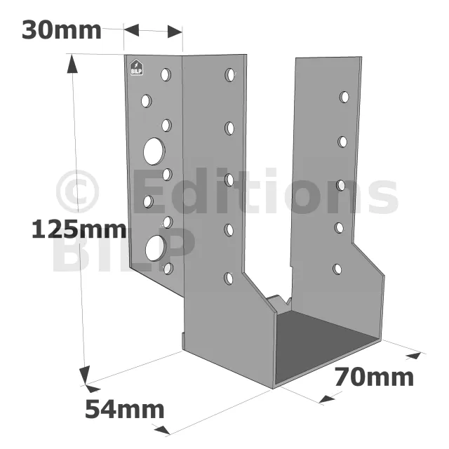 Sabots à ailes extérieures, gamme SBE ECONOMIQUE (épaisseur 1,5mm, profondeur 55mm) - Réf. SBE70/125_35