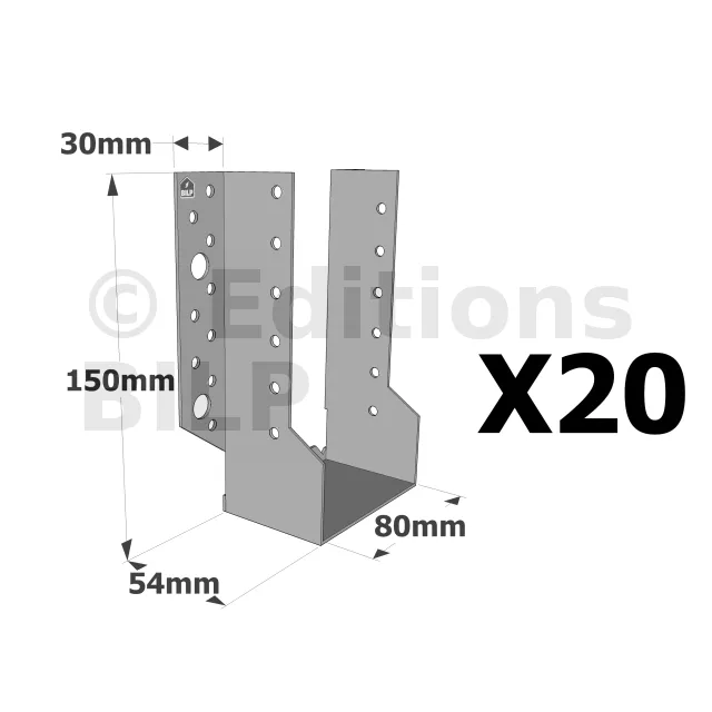 Sabots à ailes extérieures, gamme SBE ECONOMIQUE (épaisseur 1,5mm, profondeur 55mm) - Réf. SBE80/150_20