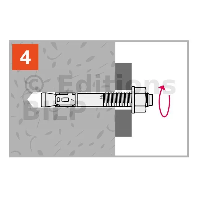 - Pose simple et rapide : écrou et rondelle prémontés et profondeur d’ancrage réduit ; Ø du filetage = Ø du perçage,