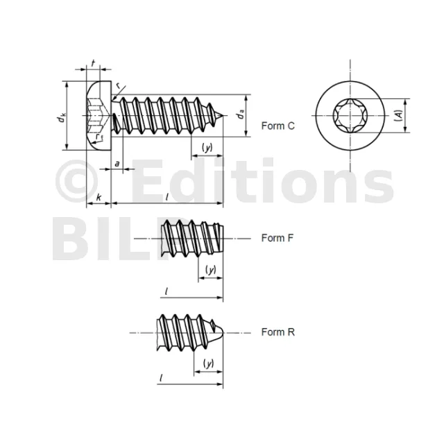 Vis à tôle à tête cylindrique bombée large - empreinte TX - Réf. 145852903804