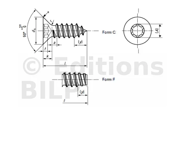 Vis à tôle à tête fraisée plate - empreinte TX - Réf. 145863901304