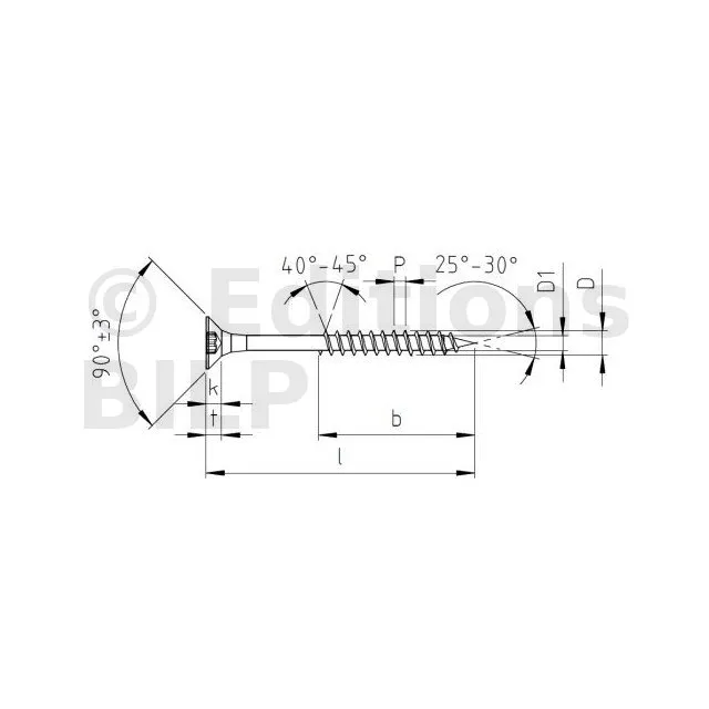 Vis à bois à tête fraisée - empreinte TX - INOX - filet partiel - Réf. 91350815002