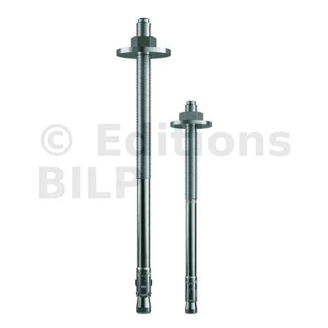 - Pose simple et rapide : écrou et rondelle prémontés et profondeur d’ancrage réduit ; Ø du filetage = Ø du perçage,