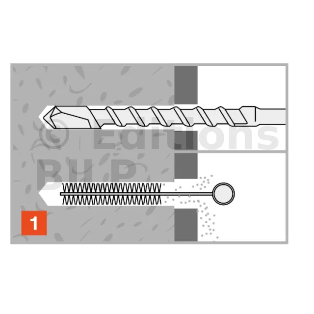 | Références | Réference produit | Dimensions [d0xL] [mm] | Ep. max élément à fixer [tfix] [mm] | Profondeur mini perçage [h1] [mm] | Profondeur d’ancrage nominale [hnom] [mm] | Ep. mini support [hmin] [mm] | Ø vis [d] [mm] | Longueur vis [Lv] [mm] | Ø colerette [dr] [mm] |
