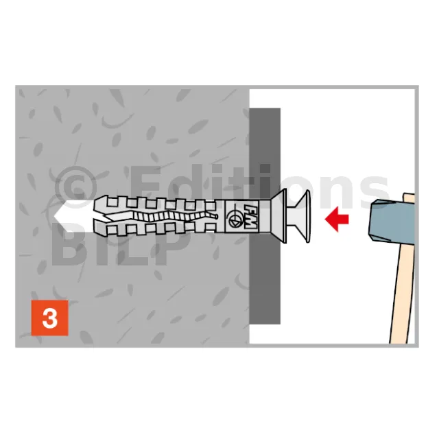 La cheville à frapper à colerette fraisée TSS convient pour la fixation rapide d’éléments légers sur supports divers.