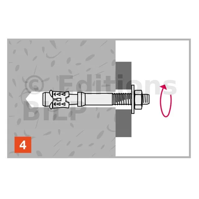 - Bague d’expansion en inox A4 pour une adhérence maximale sur les parois du perçage.