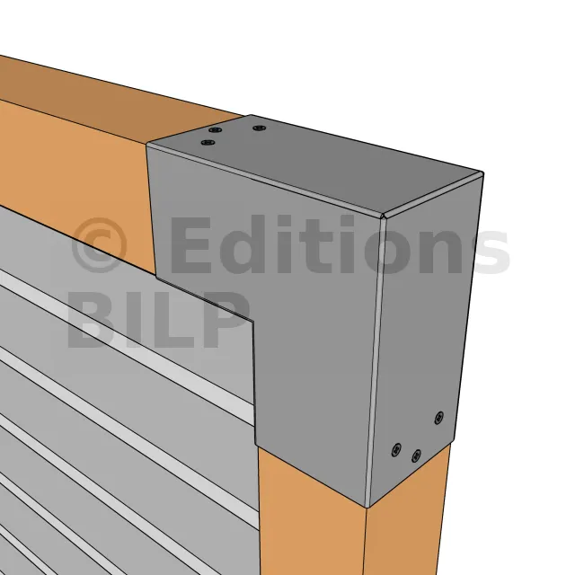 Il est utilisé dans un angle extérieur. Ce connecteur va permettre de raccorder une poutre 90x90mm perpendiculairement à une autre poutre ou à un poteau vertical 90x90mm.