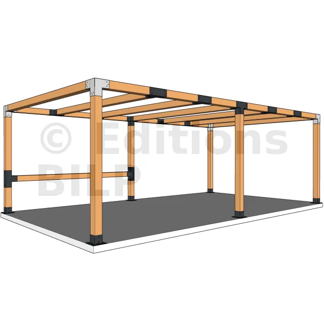 Il est utilisé dans un angle extérieur. Ce connecteur va permettre de raccorder une grosse poutre 120x120mm perpendiculairement à une poutre 120x120mm, le tout étant supporté par un poteau vertical 120x120mm.