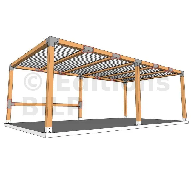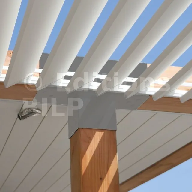 Il permet également la connexion d’une longue poutre de 120x120mm à un poteau intermédiaire de 120x120mm.