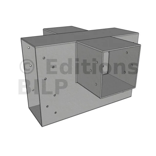 Il permet de raccorder deux poutres 120x120mm perpendiculairement à une grosse poutre 240x120mm, SANS être soutenu par un poteau vertical.