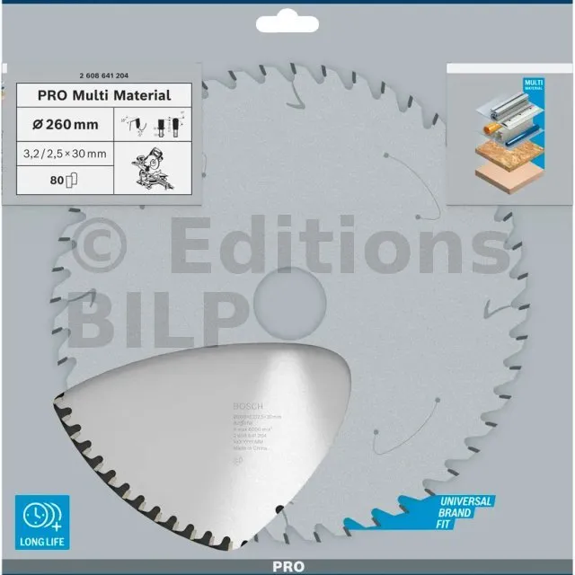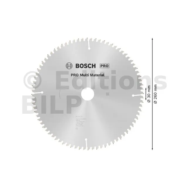 Lame de scie circulaire PRO 260 x 30 x 3.2 mm - 80 dents - Multi matériaux - Réf. 2608641204