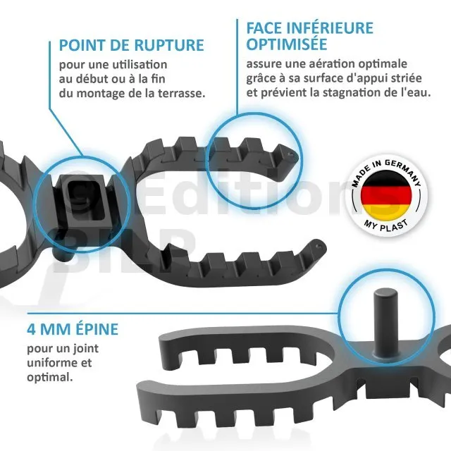 En cas de doute, choisissez les cales de 4 mm : si les lames gonflent jusqu’à se toucher, cela peut provoquer des déformations du bois et endommager la terrasse.