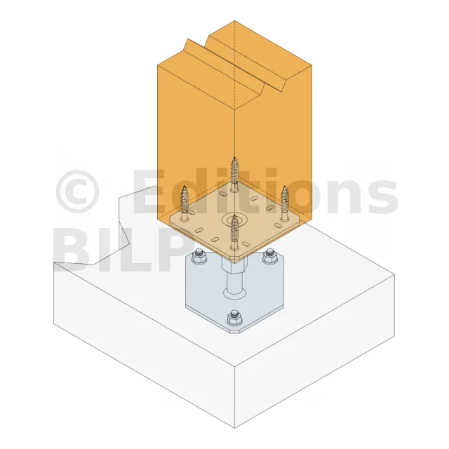 Pied de poteau pour angle de dalle béton, hauteur réglable : 100 à 150 mm - Réf. PBLR