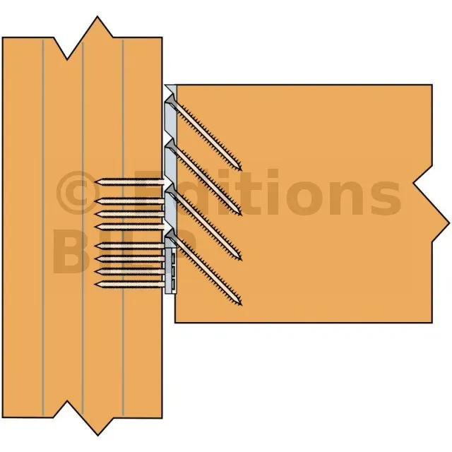 - Fixation bois/bois - type poteau/poutrePorteur : 9 x CNA4,0X50 ; Porté : 6 x vis 5,0x80
