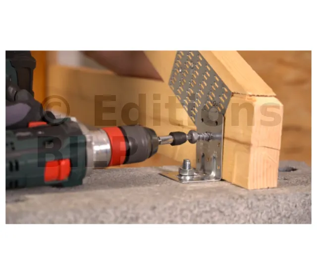 3. Si le support est en bois, l’équerre est aussi pointée ou vissée sur celui-ci,