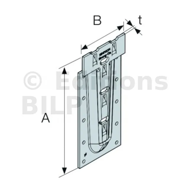 | Largeur | Hauteur | Largeur du poteau | A | B | C | D | t | Ø5 | Languette Ø6 | |||