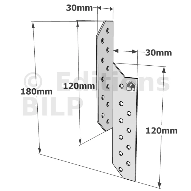 Patte de solivage DROITE - 30x180x1.5mm - Réf. PSD180/30/1.5