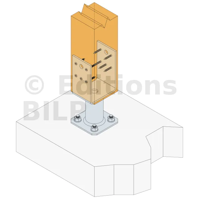 - Connexion bois sur support rigideSur poteau : 10xCNA4.0x40 Sur béton : 4Ø10