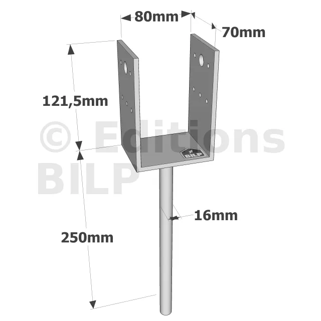 Pieds de poteau en U à sceller - Réf. PPD80/70G_10