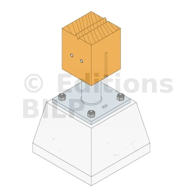 - Connexion bois sur support rigideSur poteau : 2Ø12 (broches STD) ; sur béton : 4Ø16 (goujons WA ; tige filetée)