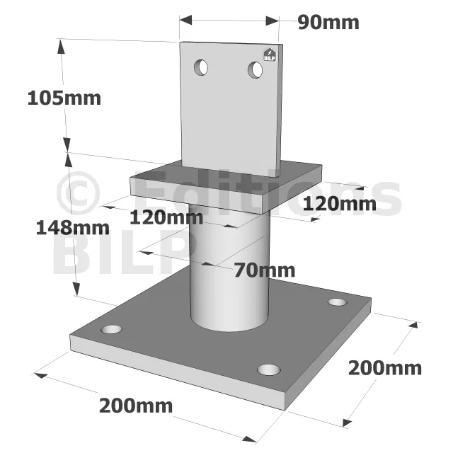 - La longueur des broches correspond à la section du poteau.