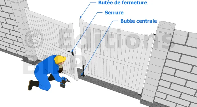 Pour maintenir votre portail en position ouverte, vous pouvez ajouter des butées au sol de chaque côté des battants quand ces derniers sont ouverts.