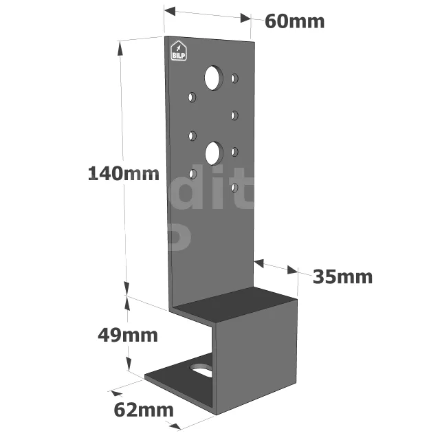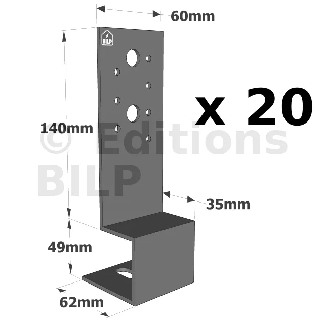 Le pied de poteau PBP60/50 est préconisé pour la réalisation d‘ouvrages de type pergola. Il offre une grande polyvalence dans sa Mise en œuvre. Il s‘utilise par paire pour des sections de poteaux carrés de 70 à 150 mm. Pour des sections plus importantes (250 x 250 maximum), l‘utilisation de quatre pieds par poteau est préconisée.