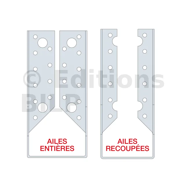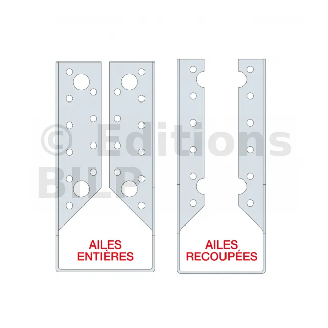 | Références | Développé [mm] | Avec perçages de pointes uniquement (ailes recoupées) | Avec perçages de tirefonds et pointes (ailes entières) |