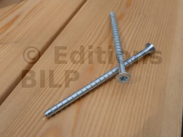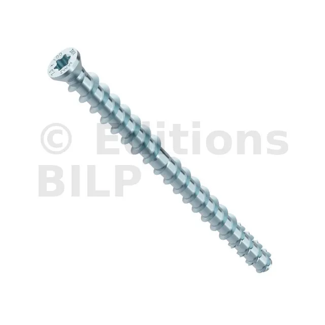 - Vis composée de deux filets, la partie inférieure est destinée pour rentrer dans le béton et la partie supérieure pour rentrer dans le bois.