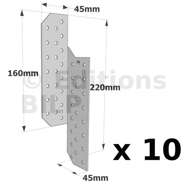 Patte de solivage DROITE - 45x220x2mm - Réf. PSD220/45/2_10
