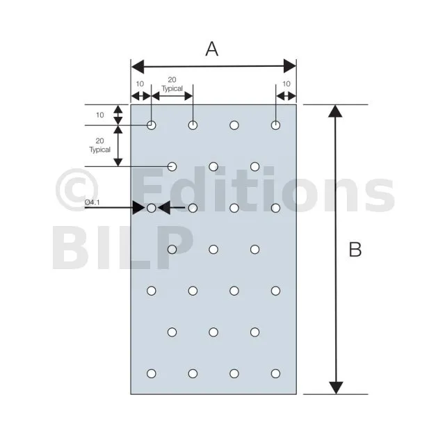 | Références | Dimensions [mm] | Perçages | Valeurs Caractéristiques - 1 plaque [kN] | |||