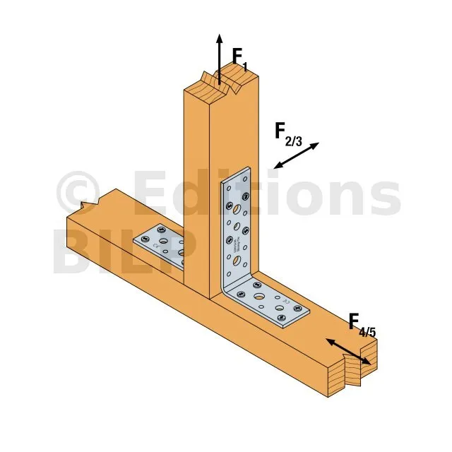 - Fixation bois/support rigide - type poutre/support rigideAile B : 7 - type : CNA Ø4.0x35 ou Ø4.0x50 mm ; Aile C : 1 - type : WA M10-78/5 - Assemblage avec 2 équerres