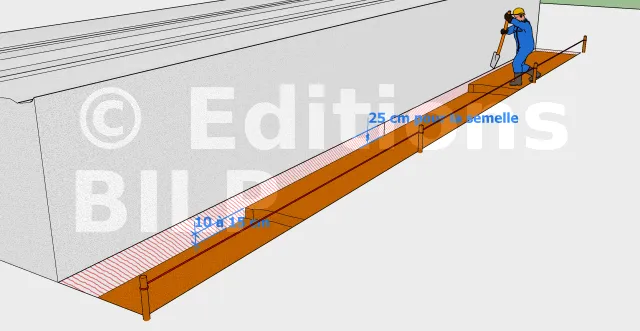 En respectant les instructions, vous devrez creuser l’emplacement des semelles en ajoutant 10 à 15 cm.