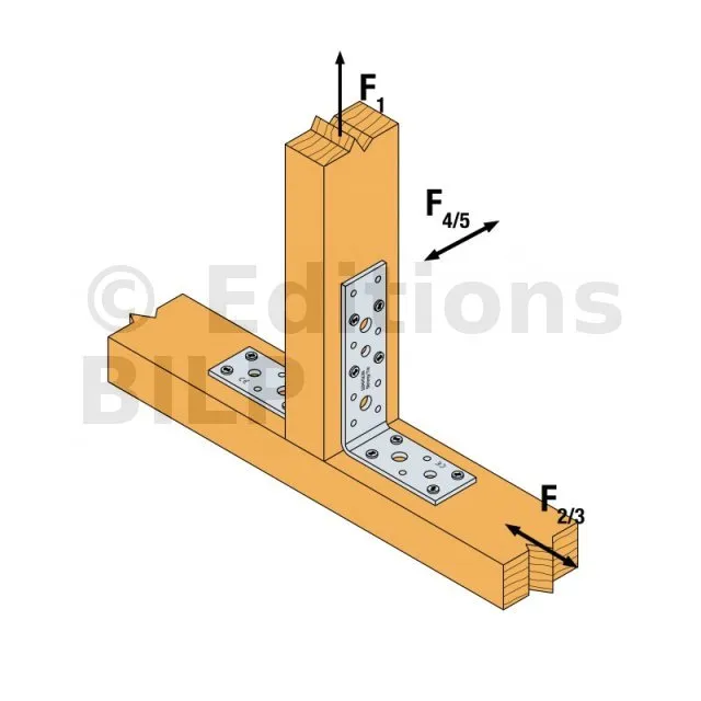 - Fixation bois/bois - type poteau/poutreAile B : 4 ; Aile C : 4 ; type : CNA Ø4.0x35 ou Ø4.0x50 mm - Assemblage avec 2 équerres