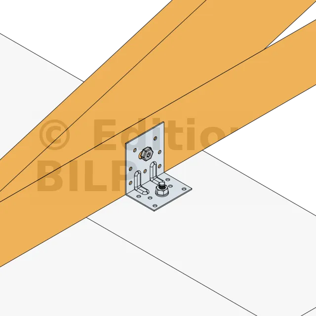- Fixation bois/support rigide - type poutre/support rigideAile B : 7 - type : CNA Ø4.0x35 ou Ø4.0x50 mm ; Aile C : 1 - type : WA M10-78/5 - Assemblage avec 2 équerres