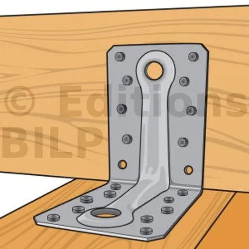 - Si l’ensemble de la structure empêche la rotation de la panne ou du poteau, la résistance en traction est égale à la moitié de la valeur donnée pour deux équerres.