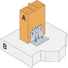 - Fixation bois/support rigide - type poteau/support rigideAile A : 12 - type : Pointes annelées CNA Ø4.0x35 ou Ø4.0x50 mm ; Aile B : 2 - type : boulon Ø12