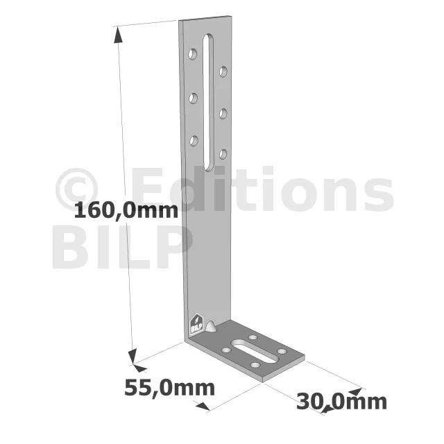 - Trous oblongs facilitant l’ajustement des assemblages,