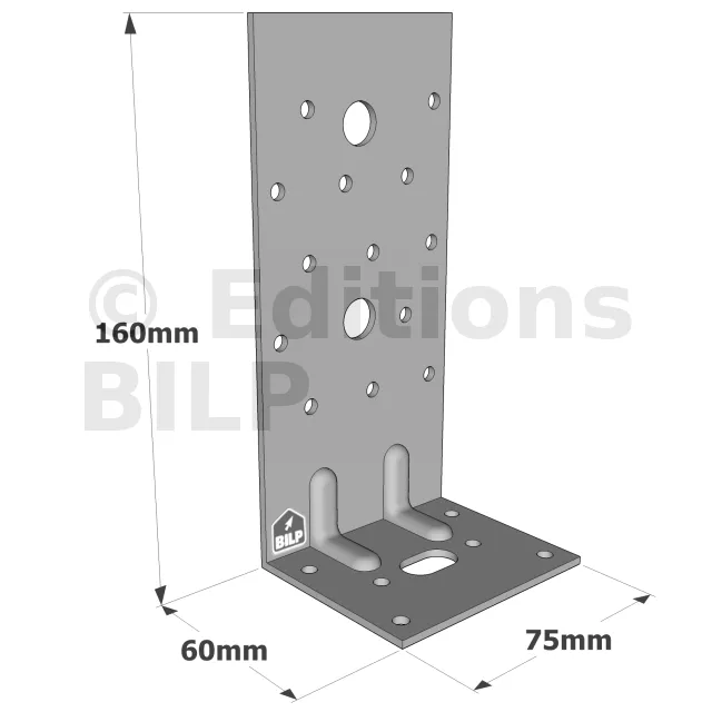 Équerres renforcées CLASSIQUES asymétriques pour le BOIS et le BETON - Réf. E8/2.5