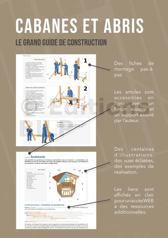 Du bricoleur débutant au poseur pro, réussissez votre cabane à coup-sûr. Offrez-vous le nec-plus-ultra des guides de construction, le guide COMPLET et son accès Membre exclusif.