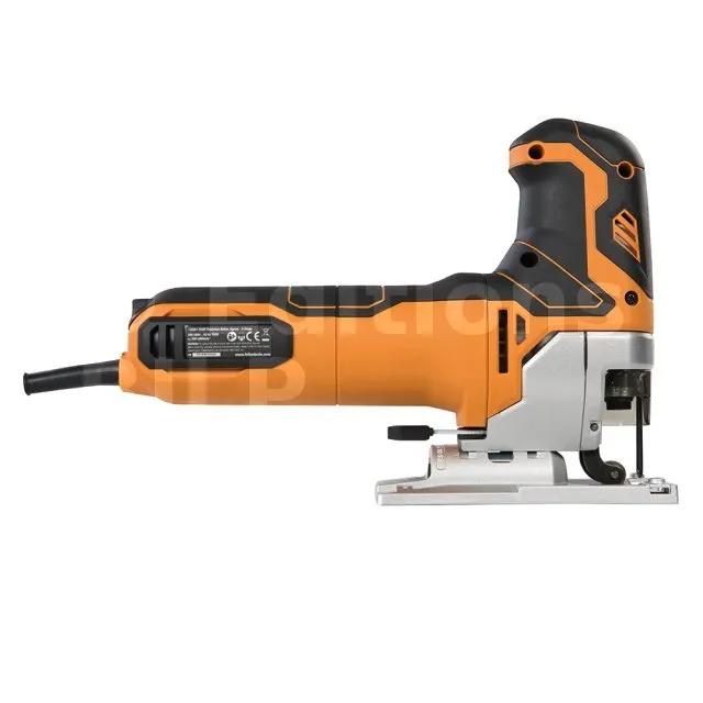 - Pourvue de deux poignées et conçue avec un design parfaitement équilibré permettant de maintenir la scie sauteuse sur la pièce d’ouvrage et de la déplacer en restant parfaitement stable