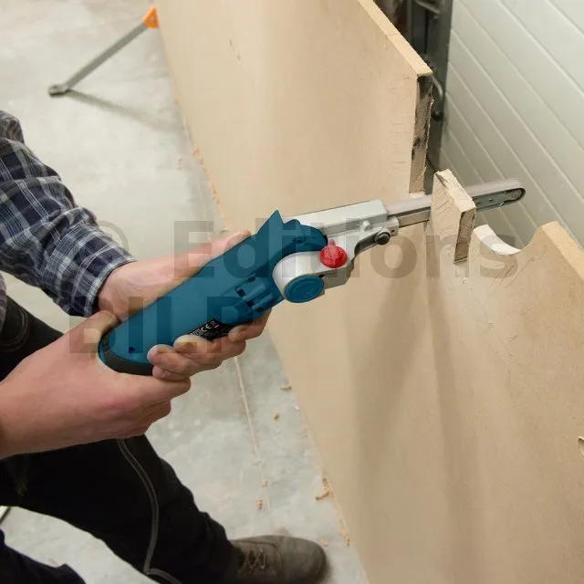Une tubulure d’extraction de la poussière se trouve sur le côté de l’appareil, au niveau de la base, pour y brancher un système d’extraction sur l’adaptateur. Les commentaires reçus témoignent du bon équilibre de cet outil, grâce au moteur en ligne, plutôt qu’un moteur instable placé de côté.